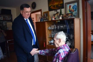 Анатолий Овсянкин поздравил почётного гражданина города-героя Смоленска и передал подарки от секретаря регионального отделения партии, председателя Смоленской областной Думы Игоря Ляхова.